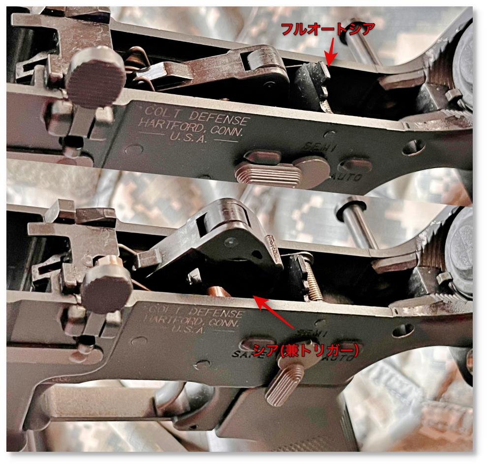 ハンマーのすぐ後ろには板金製のフルオートシアがある