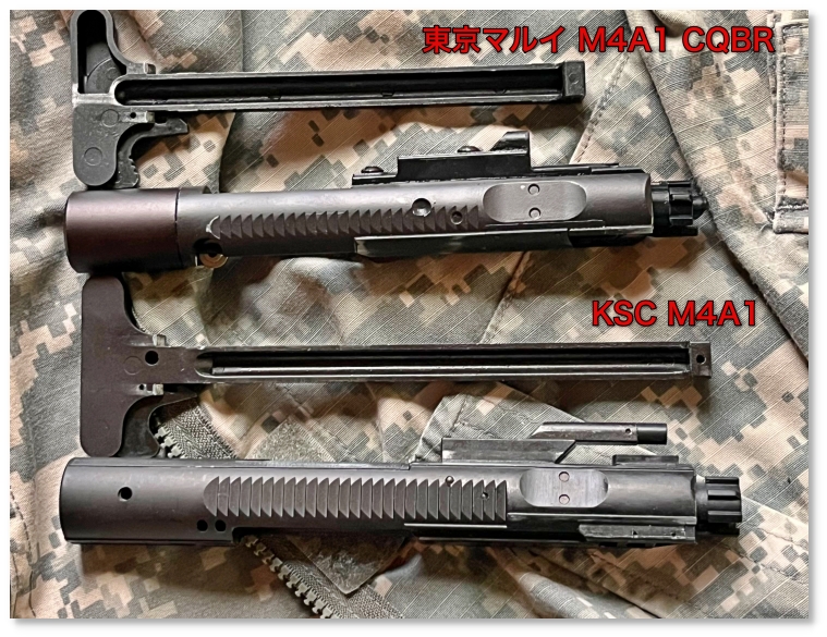 チャージングハンドルにガスチューブの貫通孔がないのは両方とも同じだが