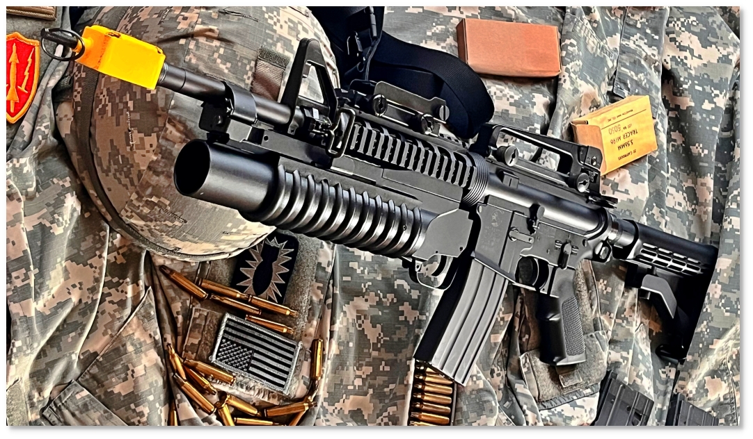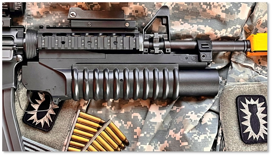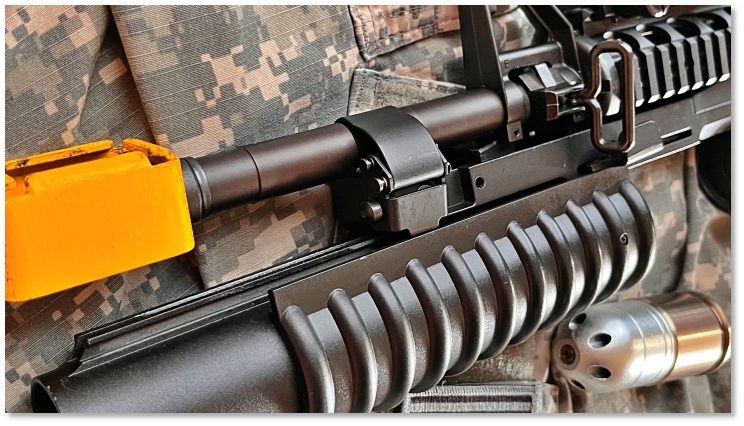 そうするとマルイの場合デルタリング・バレルロッキングの形状が実銃と全く違うために諦めていたM203グレネードランチャーをバレルに直付けする米軍の標準的な装着法を試したくなった。