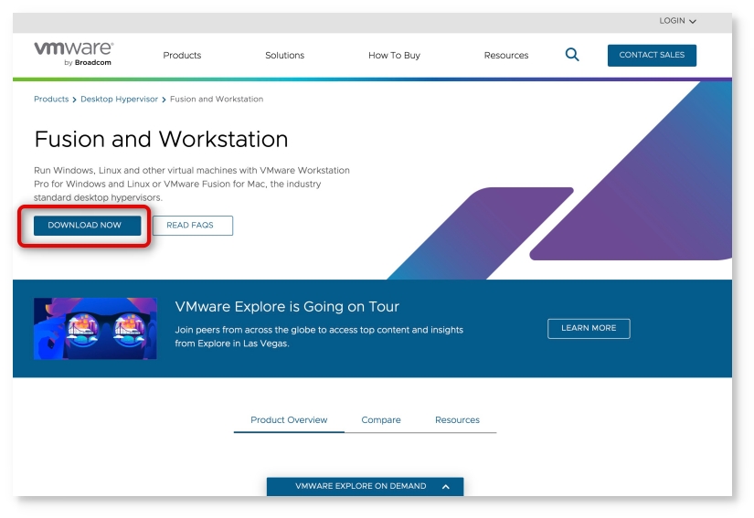 するとFusion and Workstationのページに入れるので「DOWNLOAD NOW」をクリックする