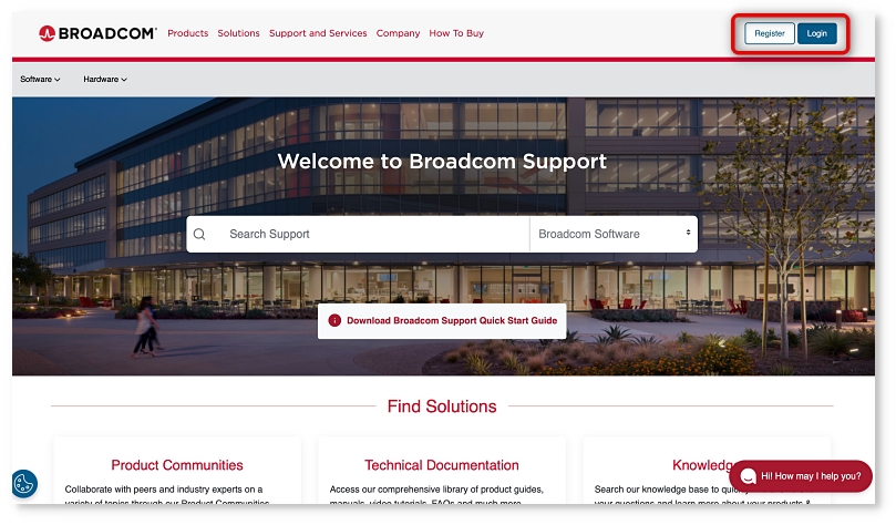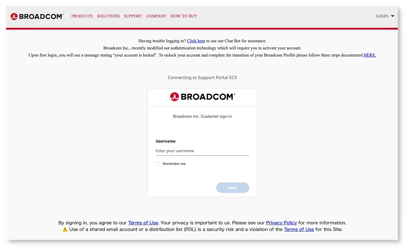 Broadcomのアカウントを持っている人はアカウント名とパスワードを入力してログインするのだが